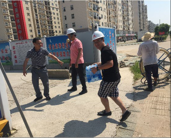 時下正值三伏天,暑氣逼人,持續(xù)高溫給施工現(xiàn)場一線的員工帶來了嚴峻的考驗,為確保安全生產以及一線人員的人身安全和身體健康,公司總經理徐遠征、副總經理徐家富領導班子及工程管理部和項目經理們組成慰問組前往各施工現(xiàn)場精心開展“情系一線,夏送清涼”的慰問活動,深入到公司污水泵站項目部、盟盛項目部、外環(huán)路、常貴路、常貴南路項目部、仟島項目部、南湖五期項目部、世茂項目部等施工現(xiàn)場,為奮戰(zhàn)在一線的員工送去了防暑降溫用品,把清涼送到員工們的心坎上。