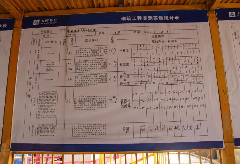 2.成品監(jiān)管展示:定期檢測(cè),實(shí)測(cè)實(shí)量數(shù)據(jù)上墻,嚴(yán)格按照標(biāo)準(zhǔn)要求執(zhí)行;