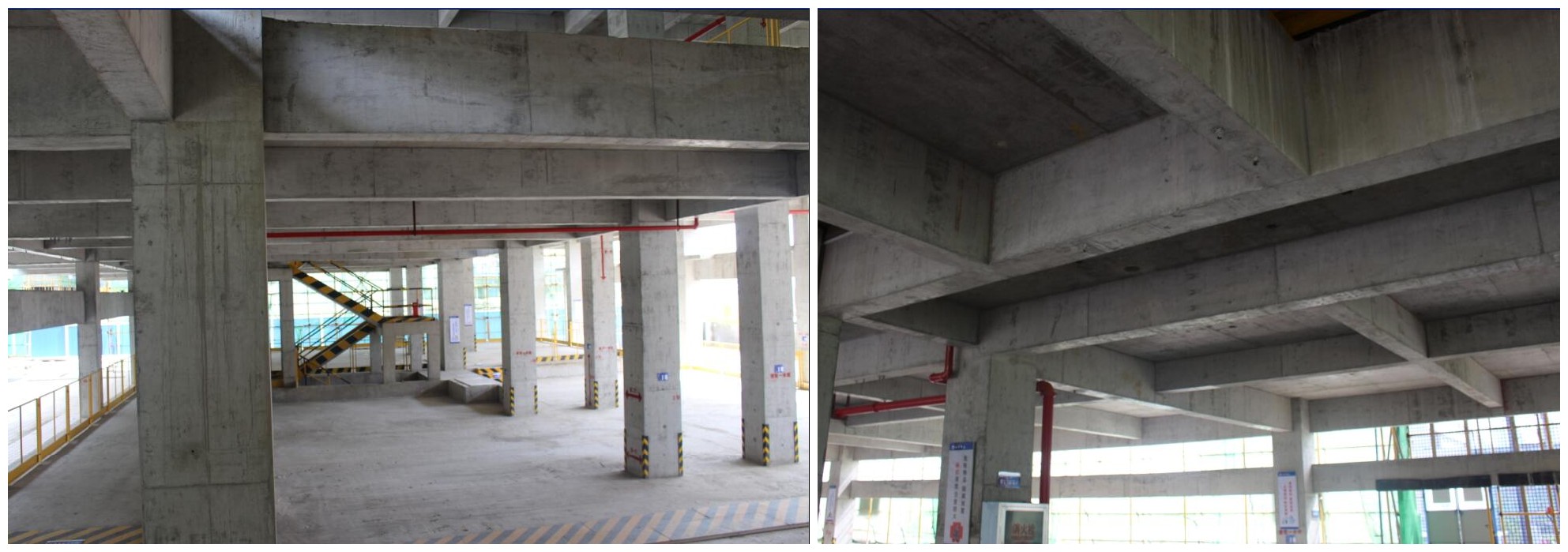主體結(jié)構(gòu)梁、柱、樓、地面:1、梁柱陰陽角順直、方正;2、模版結(jié)頭平整,無偏模、跑?,F(xiàn)象;3、混凝土表面平整、光滑、五蜂窩麻面,五亂跟現(xiàn)象,感觀度很好;4、樓、地面平整密實(shí),紋路清晰,無高低、凹凸不平現(xiàn)象。