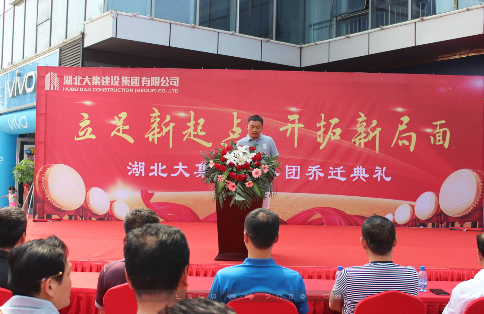 10:18分,在激情高漲的鑼鼓聲中,湖北大集建設(shè)集團(tuán)喬遷典禮正式開始。首先,由集團(tuán)董事長(zhǎng)徐濤發(fā)表講話,董事長(zhǎng)再一次向蒞臨現(xiàn)場(chǎng)的各位政府領(lǐng)導(dǎo)、行業(yè)同仁以及來賓朋友表示歡迎和感謝,然后重點(diǎn)總結(jié)了自2003年改制以來集團(tuán)的發(fā)展、壯大、收獲和成就,并表示集團(tuán)將以此次喬遷為契機(jī),繼續(xù)保持開拓進(jìn)取的積極狀態(tài)和務(wù)實(shí)求真的工作作風(fēng),在各級(jí)政府領(lǐng)導(dǎo)的支持下,各位同仁朋友的關(guān)心幫助下,努力創(chuàng)造更加輝煌的明天!