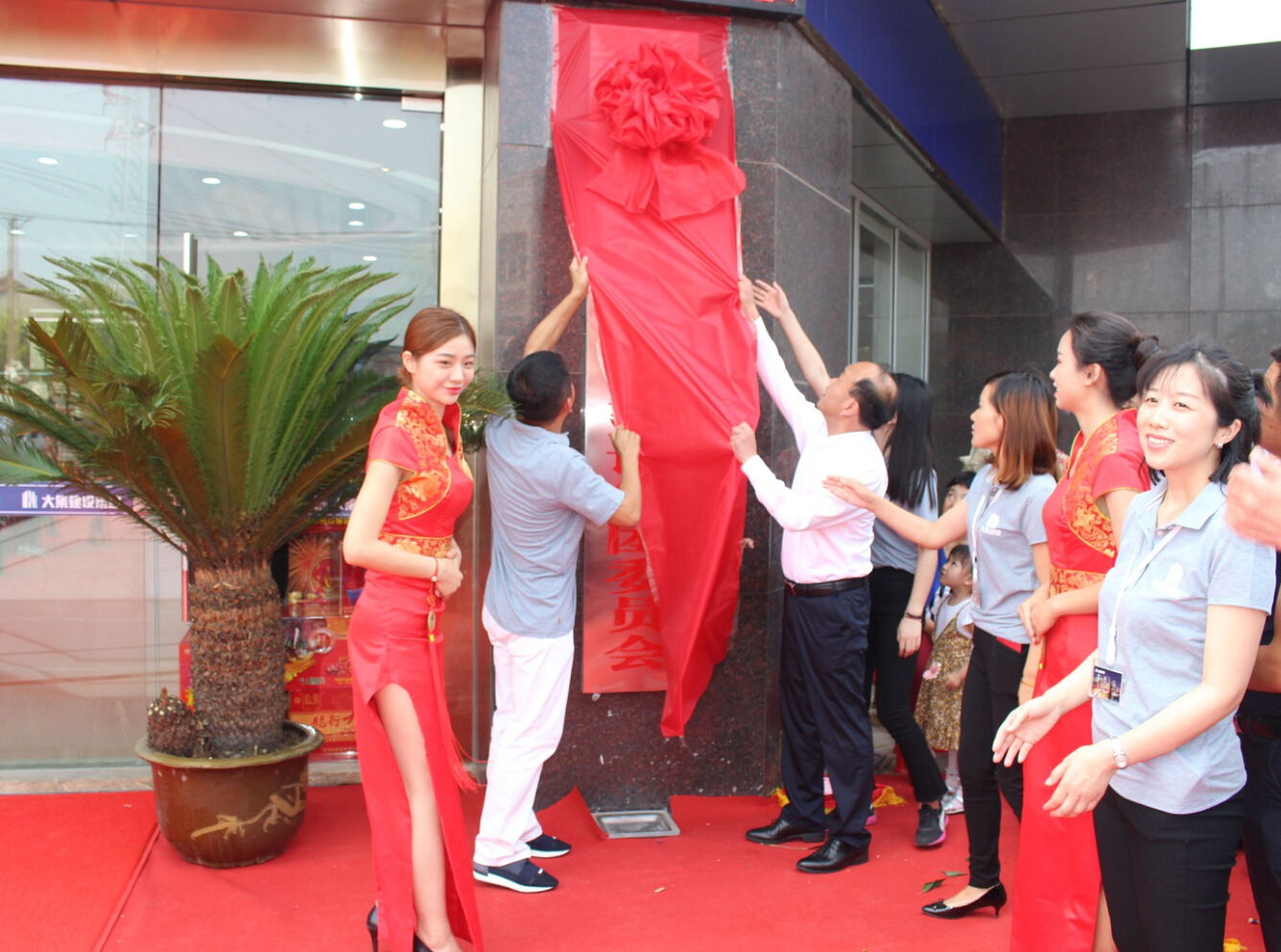 10:38分,當(dāng)徐董事長(zhǎng)、街黨委曹書記共同攜手揭開中國共產(chǎn)黨湖北大集建設(shè)集團(tuán)委員會(huì)的牌匾,總經(jīng)理徐遠(yuǎn)征、街工委王主任攜手揭開湖北大集建設(shè)集團(tuán)有限公司的牌匾時(shí),喬遷慶典的高潮環(huán)節(jié)正式開始!