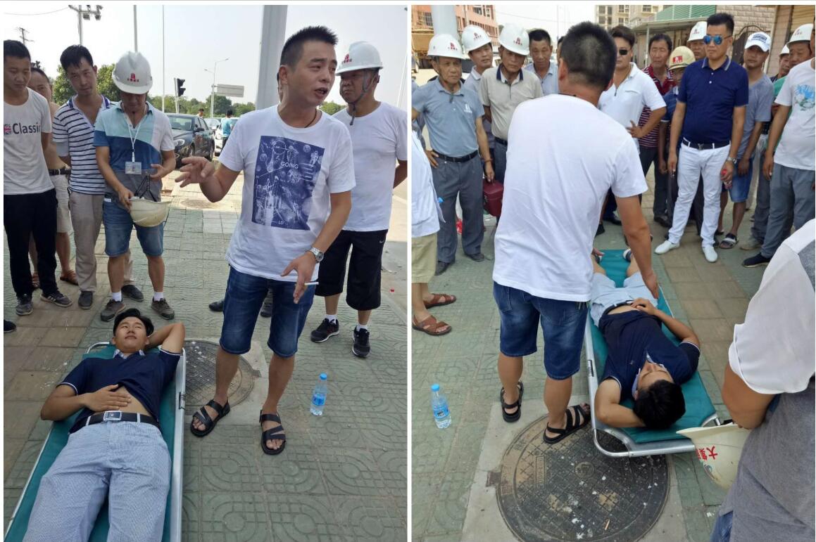 7月27日,集團(tuán)聯(lián)合大集街醫(yī)院共同開展防暑應(yīng)急救援工作的現(xiàn)場演練,集團(tuán)副總經(jīng)理徐家富,各項(xiàng)目經(jīng)理、施工員、安全員積極參與,通過此次演練,讓所有人員學(xué)會如何應(yīng)對高溫中暑的突發(fā)情況,如何進(jìn)行科學(xué)有效的現(xiàn)場施救,從而保證項(xiàng)目部能夠正確、快速地處理緊急險(xiǎn)情,避免安全生產(chǎn)事故的發(fā)生!