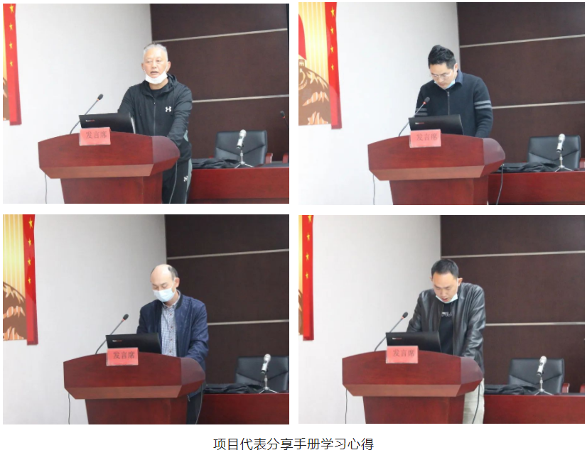 項目經(jīng)理代表周感書、房建施工員代表魏巍、房建安全員代表張彥偉以及市政施工員代表彭文杰依次上臺,從不同角度分享了他們對《湖北省質量安全手冊》的學習心得。